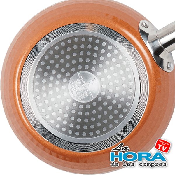Descripción del producto: El Copper Chef Diamond Cookware 3pc Set es un juego de sartenes antiadherentes con tecnología Cerami-Tech y textura de diamante que permite cocinar sin aceite y sin que los alimentos se peguen. Fabricadas en aluminio de alta resistencia con base de acero inoxidable para inducción, distribuyen el calor de forma uniforme y rápida. Son libres de PFOA y PTFE, lo que las hace seguras para la salud. Aptas para cocinas eléctricas, de gas, cerámicas e inducción.