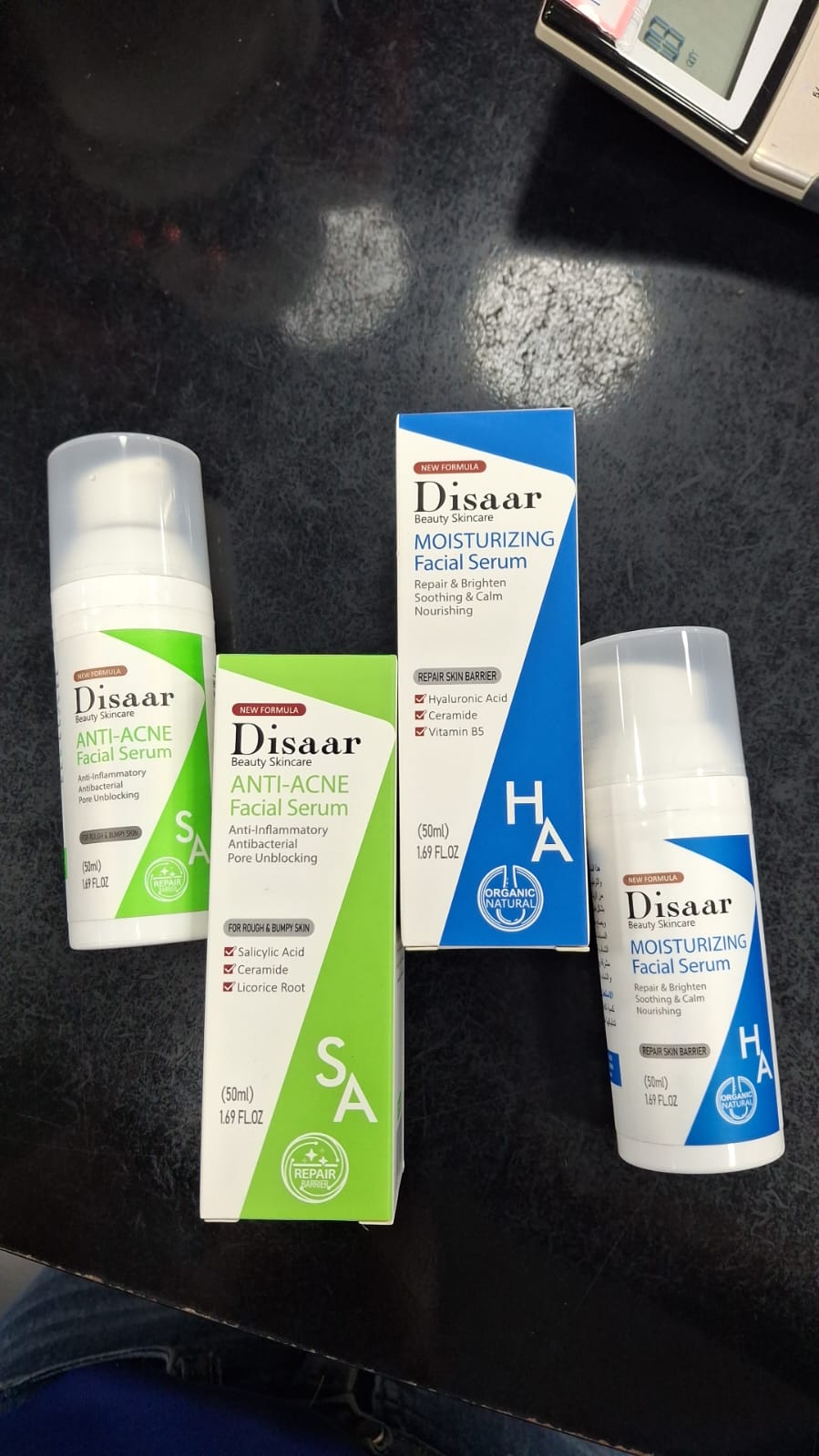 DISAAR MOISTURIZING (Azul): Repara y fortalece la Barrera Cutánea. Hidrata, ilumina y calma la piel, contrarrestando la sequedad.