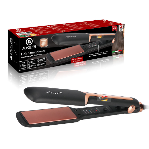 La Plancha para el Cabello Ackiliss ACL-419J fue diseñada para ofrecer un alisado rápido, eficiente y con el máximo cuidado para el cabello. Con 40 W de potencia y placas con revestimiento cerámico, garantiza un deslizamiento suave, calentamiento uniforme y menor frizz. Su control digital de temperatura, ajustable entre 140°C y 200°C, permite adaptarse a diferentes tipos de cabello, desde los más finos hasta los más gruesos. Ligera, práctica y con un diseño elegante en negro y rose gold, es la herramienta ideal para el uso diario, viajes o para quienes buscan resultados profesionales en casa.