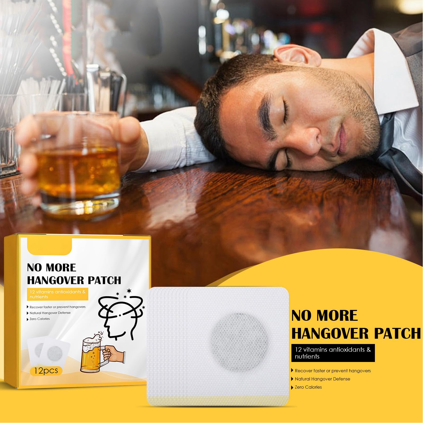 No More Hangover Patch" (Parche para la resaca).