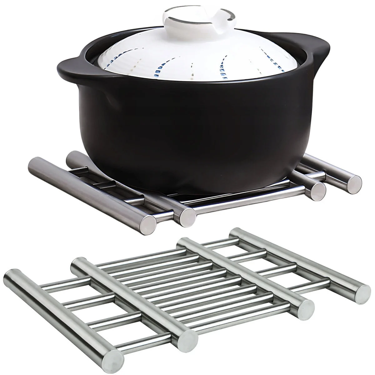 Haz tu cocina más práctica y segura con este soporte ajustable para ollas y recipientes calientes.