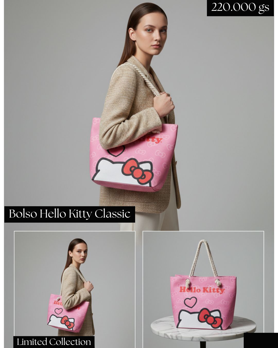 👜 Diseño clásico en color rosa, ideal para fans de Hello Kitty