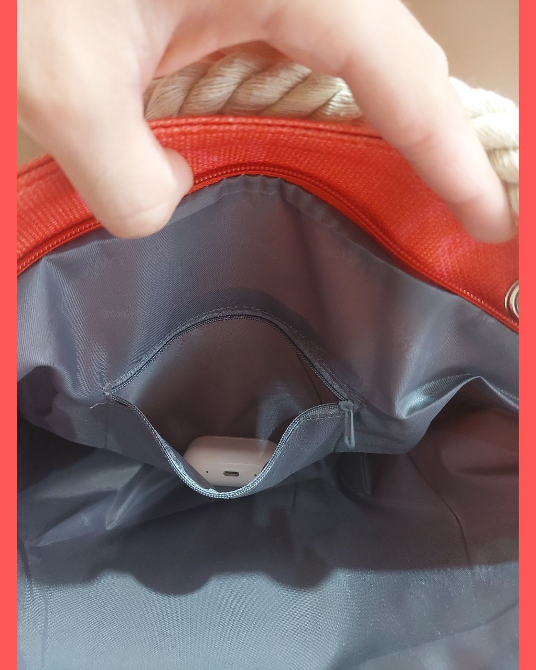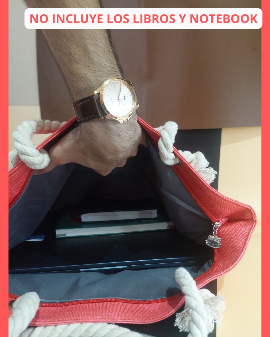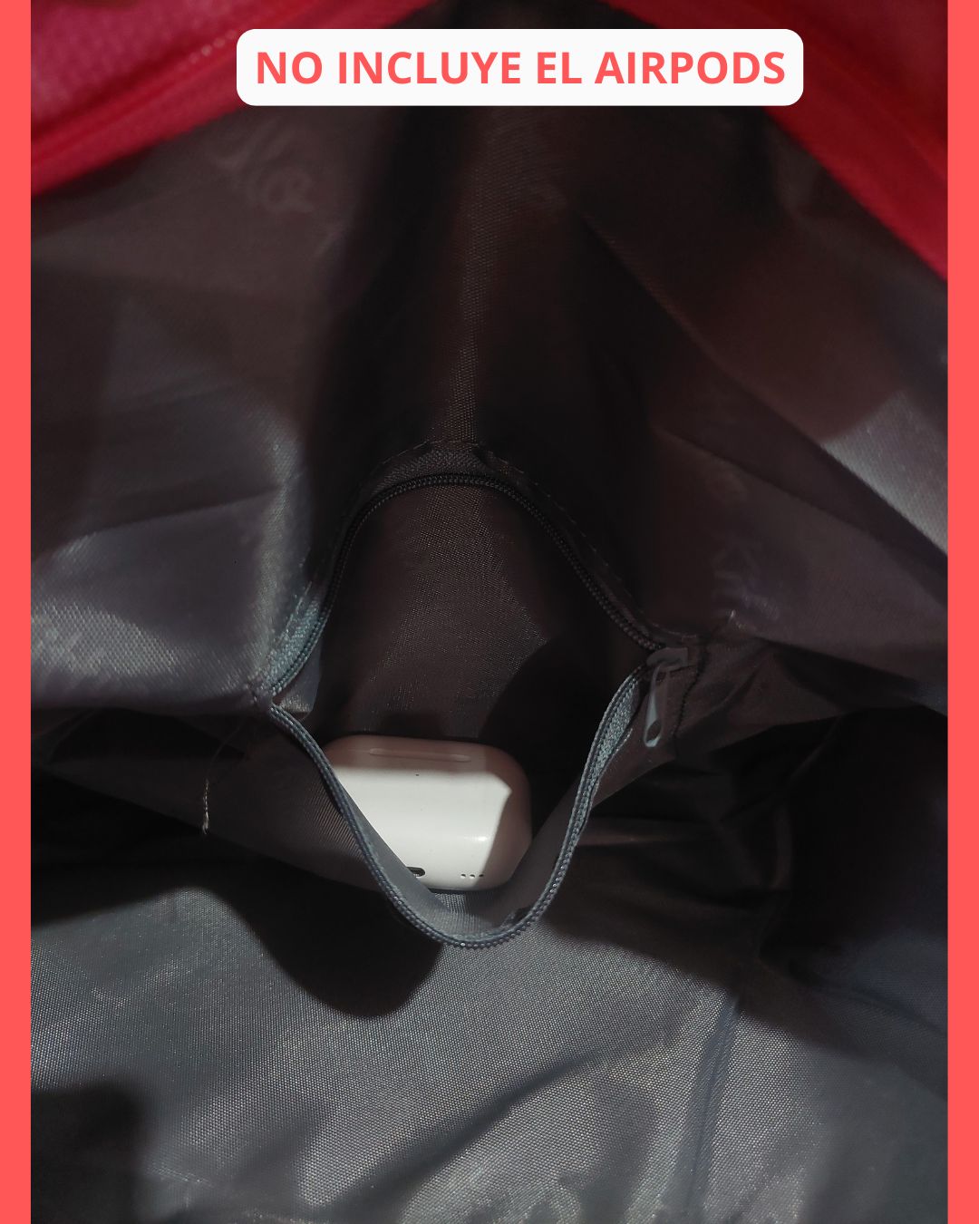 Airpods, Notebook y Libros NO INCLUIDOS son para ilustrar el tamaño del bolso
