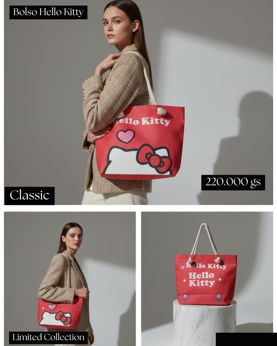 Bolso original con licencia oficial de Hello Kitty, diseño clásico en color rojo. Perfecto para uso diario, universidad, salidas o regalos, combinando estilo, practicidad y material ultra resistente.