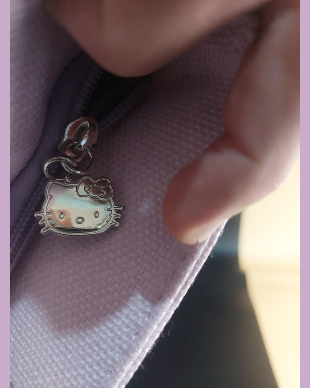 🐱 Bolsillo principal con logo y rostro de Hello Kitty