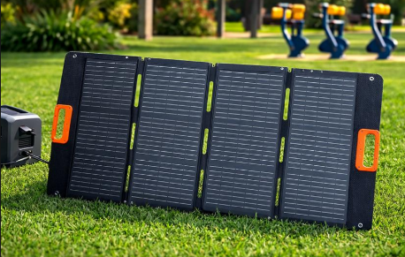Panel solar plegable, portátil y fácil de transportar, ideal para actividades al aire libre.