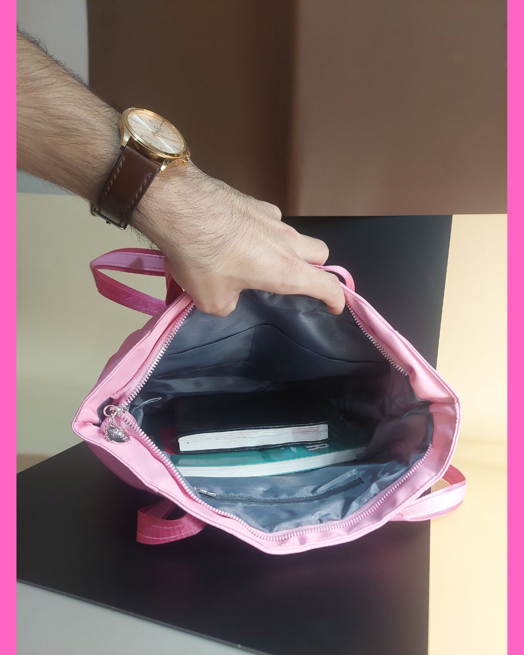 Airpods, Notebook y Libros NO INCLUIDOS son para ilustrar el tamaño del bolso