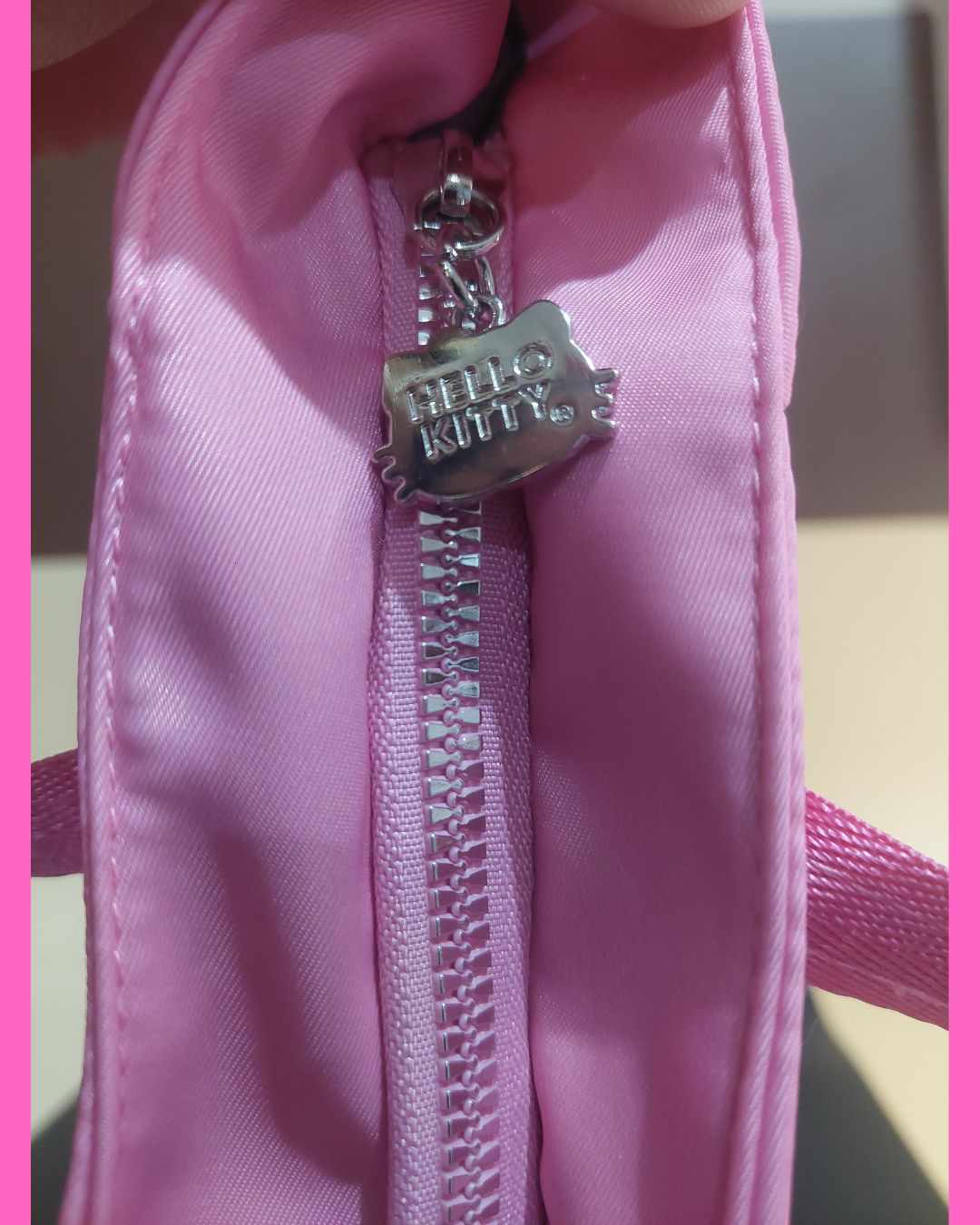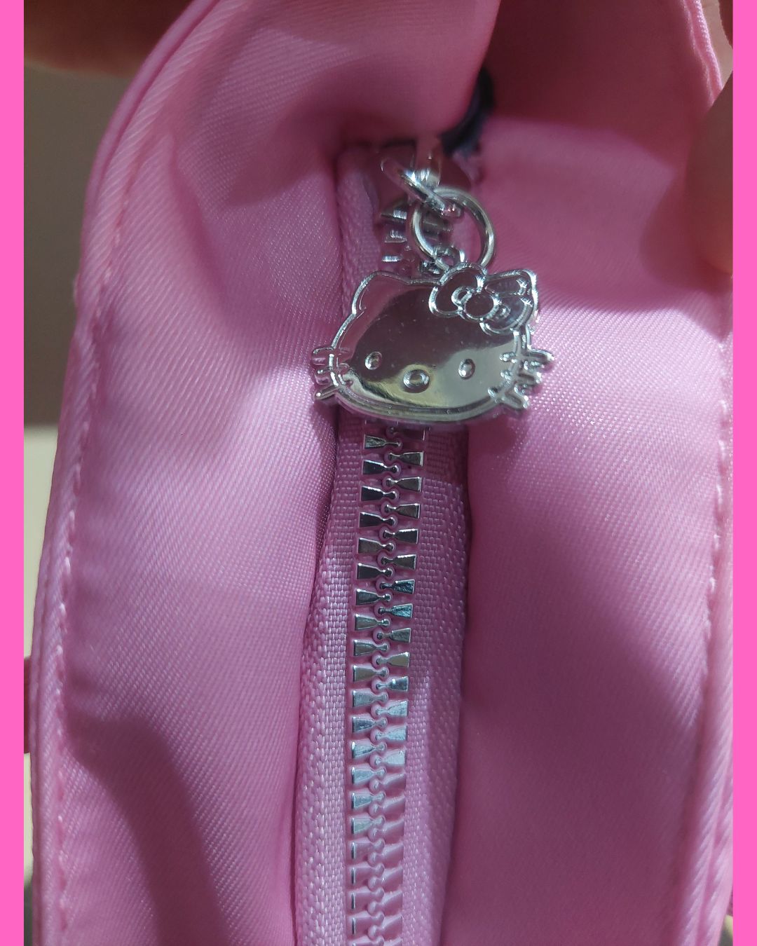 🐱 Bolsillo principal con logo y rostro de Hello Kitty
