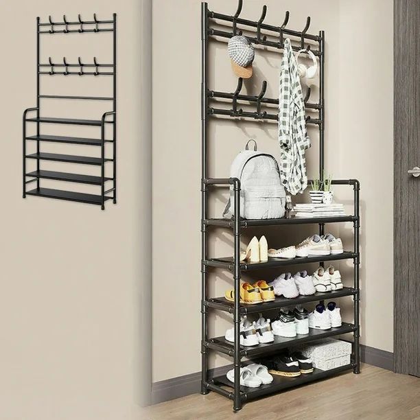El perchero con zapatero TM5-80 es un organizador multifuncional ideal para mantener tu ropa y calzado ordenados en un solo lugar. Perfecto para dormitorios, departamentos o locales.