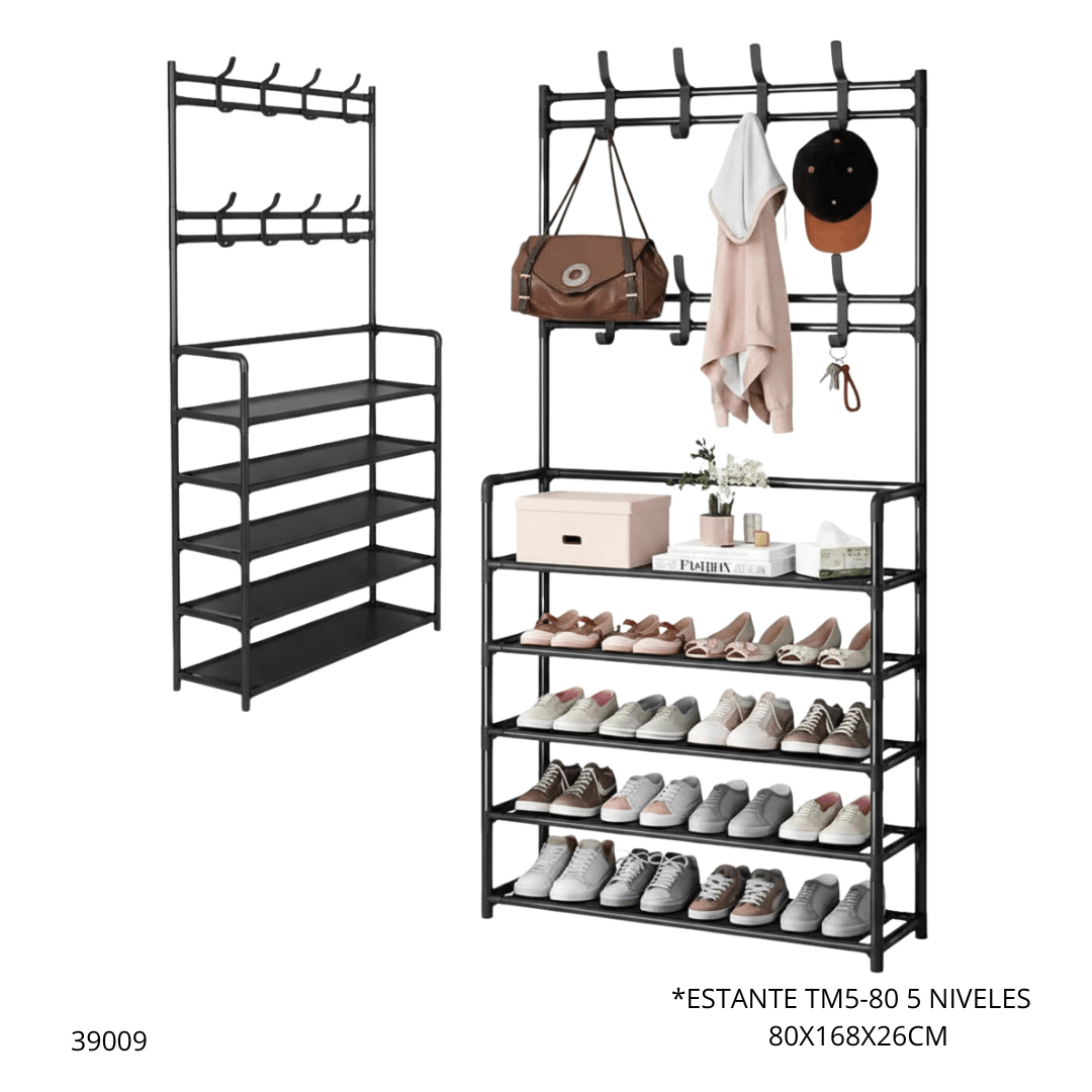 El perchero con zapatero TM5-80 es un organizador multifuncional ideal para mantener tu ropa y calzado ordenados en un solo lugar. Perfecto para dormitorios, departamentos o locales.