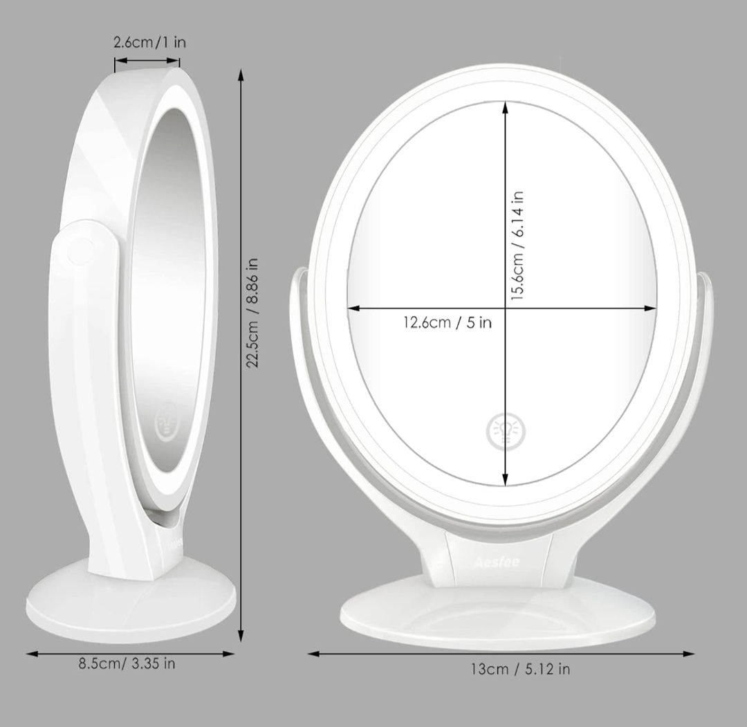 Compacto y liviano: este es un espejo de maquillaje de viaje de doble cara portátil que es fácil de transportar cuando viaja o en la oficina, siempre muestre el aspecto perfecto con este espejo iluminado en cualquier momento.